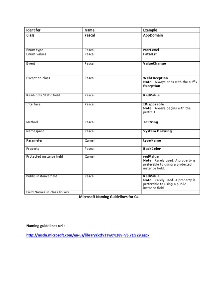 Microsoft Naming Guidelines for C#