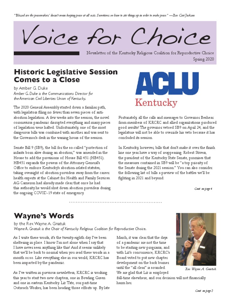 Wayne A. Gnatuk is the Chair of Kentucky Religious Coalition for Reproductive Choice.
