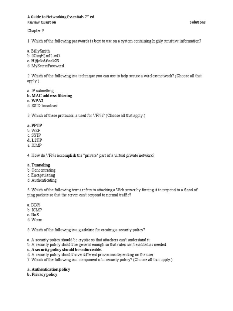 9. Which of the following should be a common element in any level of security policy? (Choose all that