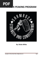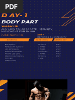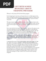The document outlines a 4 day gym program consisting of strength and circuit days. Day 1 and 3 are strength days, focusing on compound lifts like squats, rows, and presses. Day 2 and 4 are circuit days, alternating between exercises with short rest periods for a cardio challenge. Each day includes warm up routines and finishes with abdominal exercises. The program provides structure and variation over 4 days to promote strength, muscle growth, and fitness.