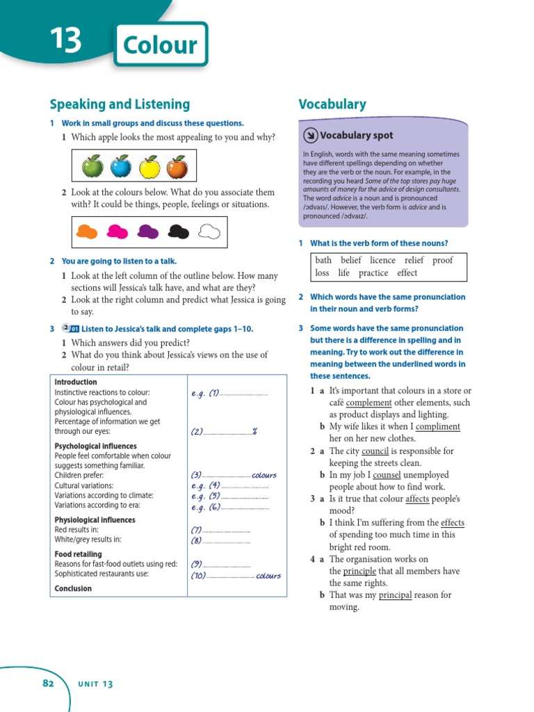 3 2 01 Listen to Jessica’s talk and complete gaps 1–10. 3 Some words have the same pronunciation