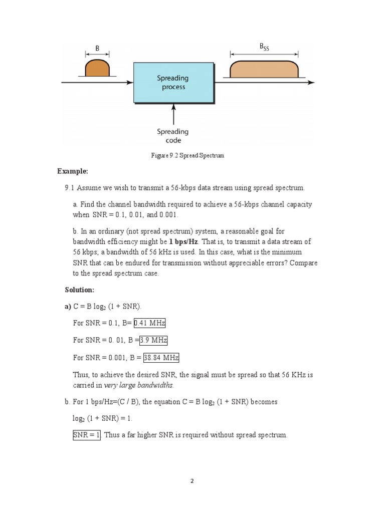 Thus, to achieve the desired SNR, the signal must be spread so that 56 KHz is