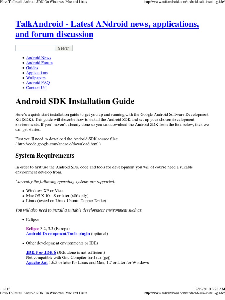 How-To Install Android SDK On Windows, Mac and Linux http://www.talkandroid.com/android-sdk-install-guide/