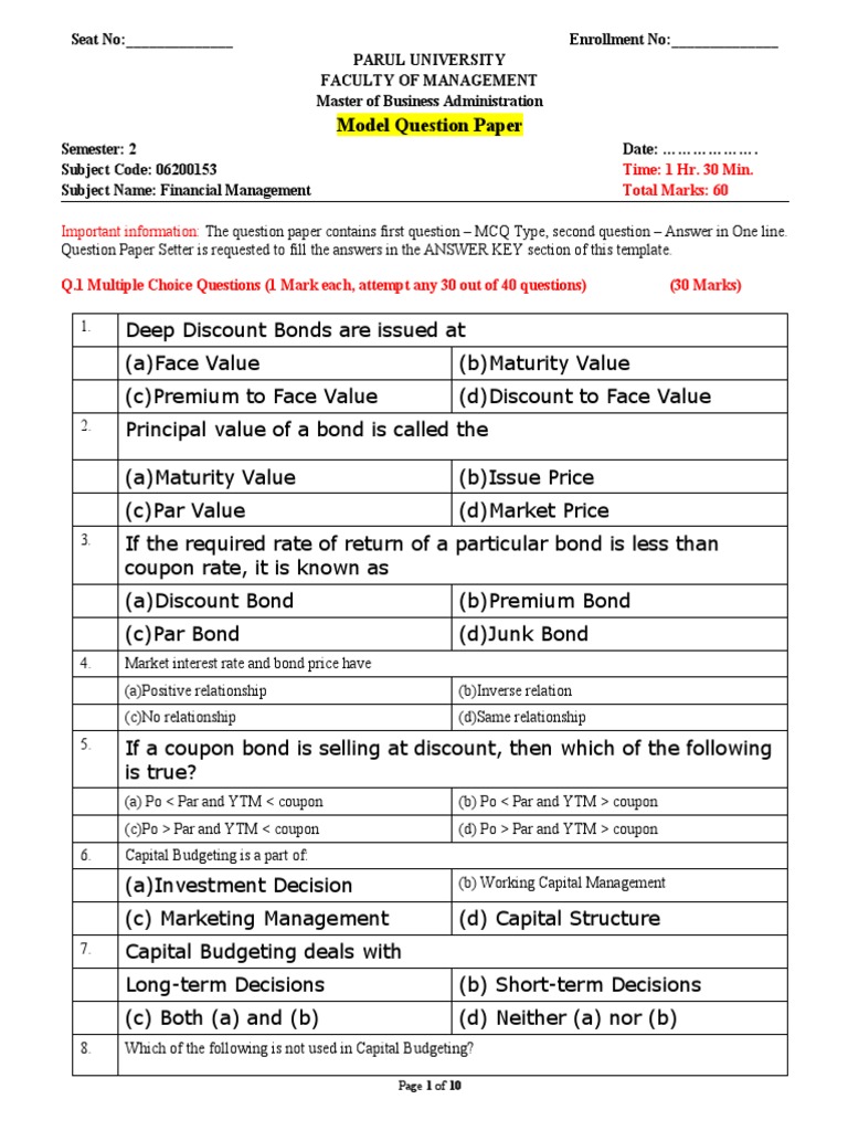 Question Paper Setter is requested to fill the answers in the ANSWER KEY section of this template.