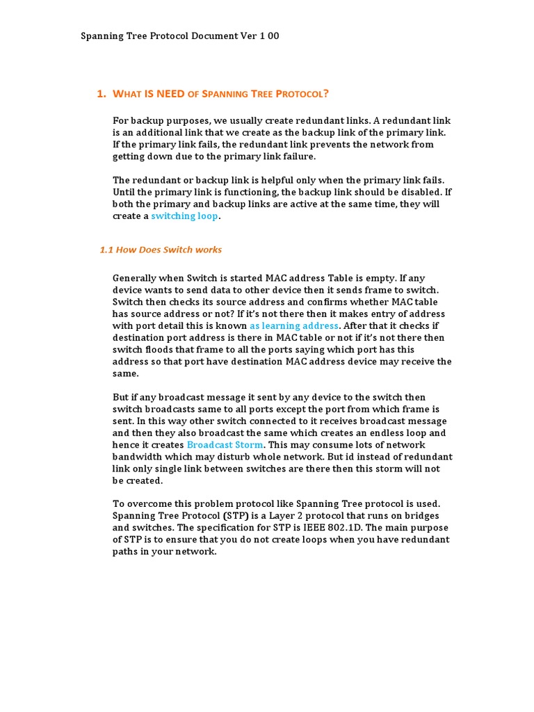 1. WHAT IS NEED OF SPANNING TREE PROTOCOL?