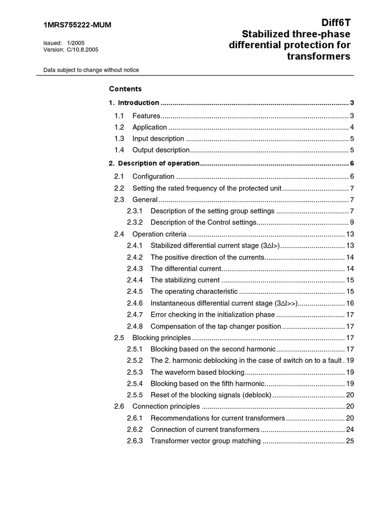 2.4.1 Stabilized differential current stage (3∆I>)................................. 13