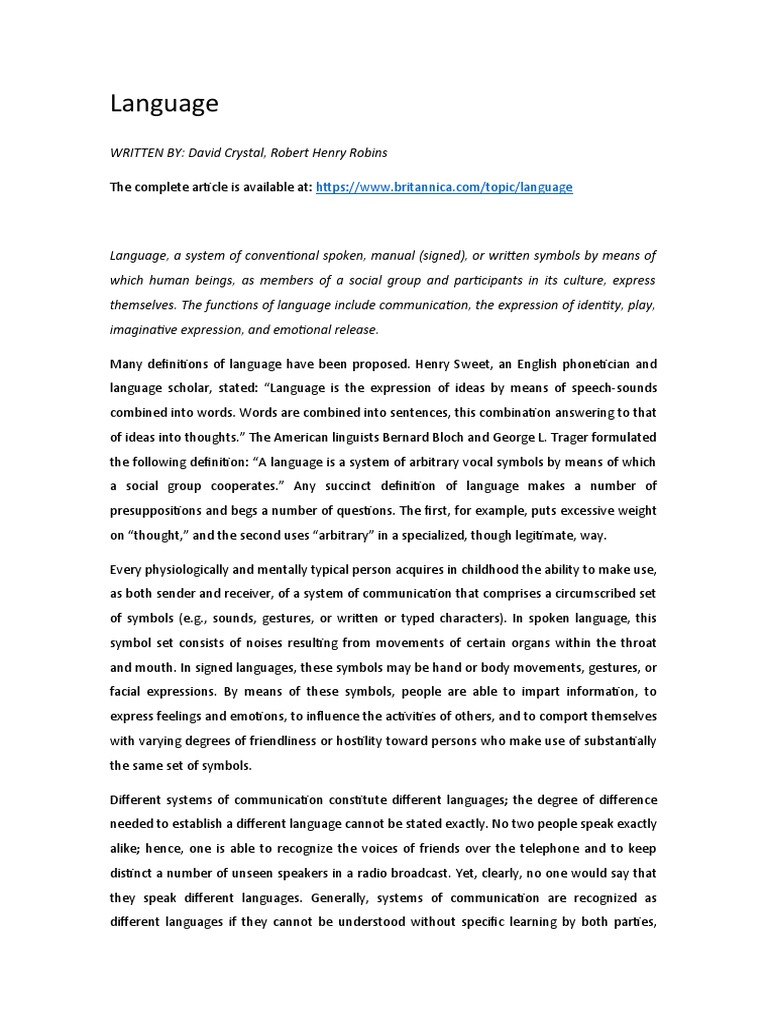 language scholar, stated: “Language is the expression of ideas by means of speech-sounds