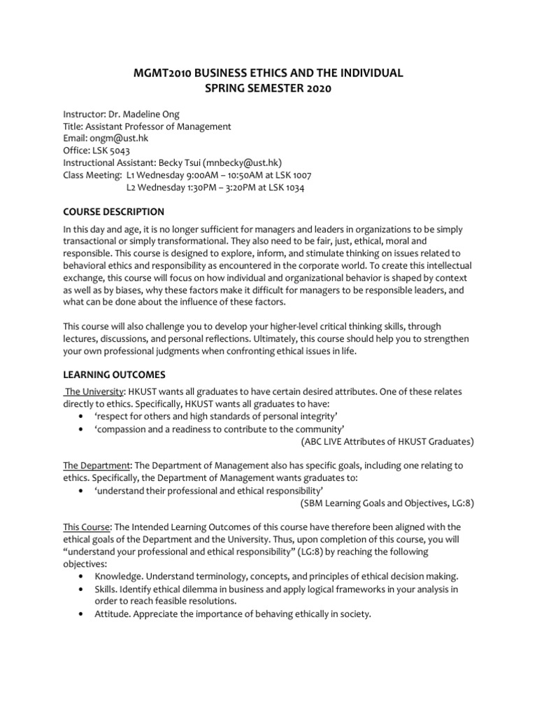 directly to ethics. Specifically, HKUST wants all graduates to have: