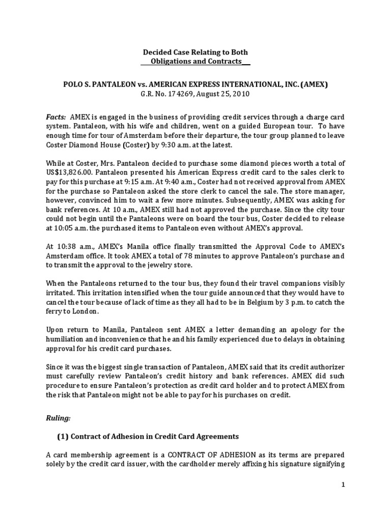 POLO S. PANTALEON vs. AMERICAN EXPRESS INTERNATIONAL, INC. (AMEX)