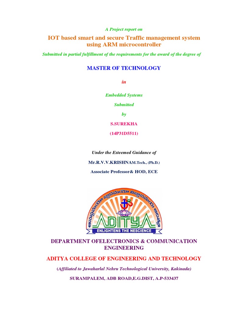 This is to certify that Project report entitled “IOT based smart and secure Traffic