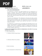 1. Identify at least five successful entrepreneurs for your choice and list out the key features