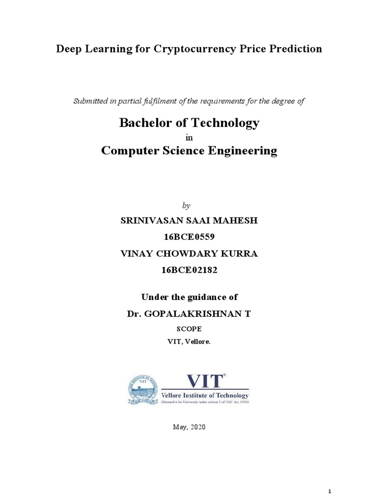 Finally, we would like to thank Vellore Institute of Technology, Vellore for providing us with