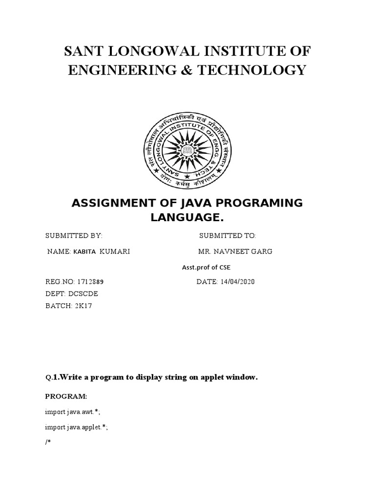 ASSIGNMENT OF JAVA PROGRAMING