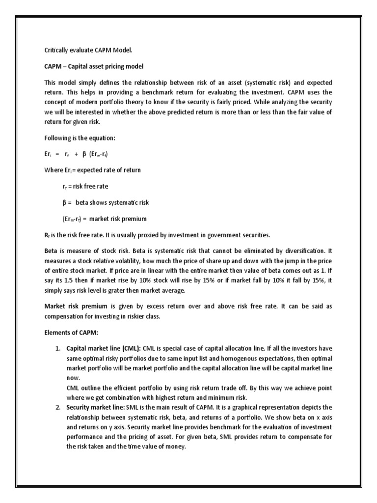 investment decisions on the basis of risk and return. CAPM assumes that rational investors