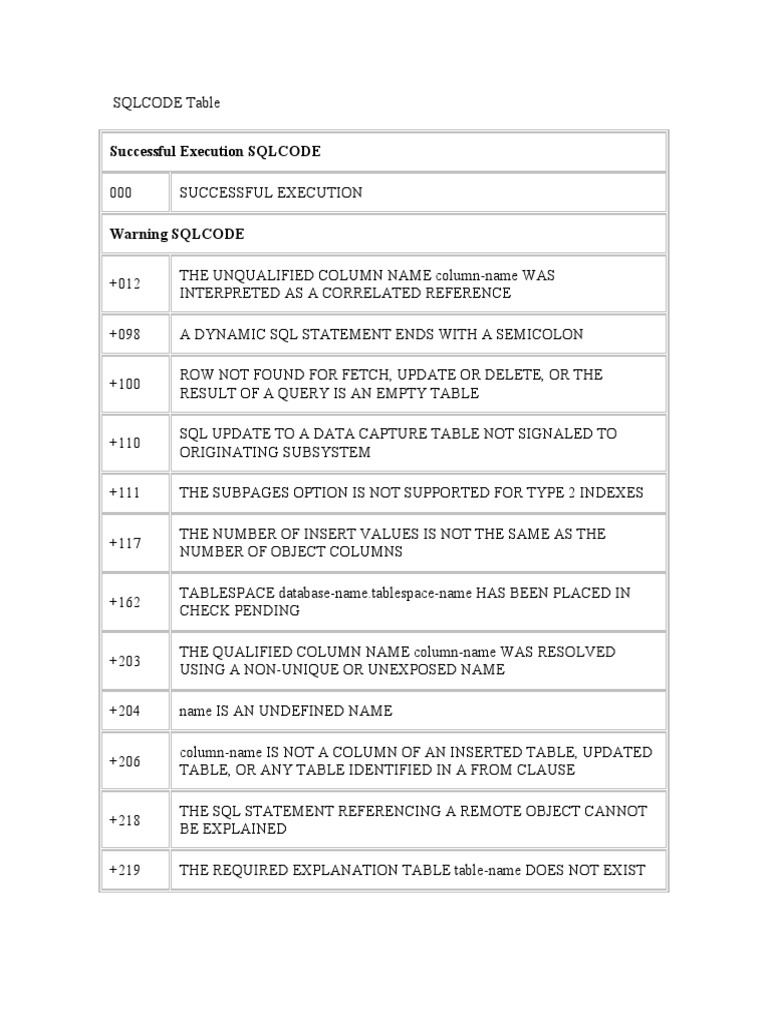 SQLCODE Table