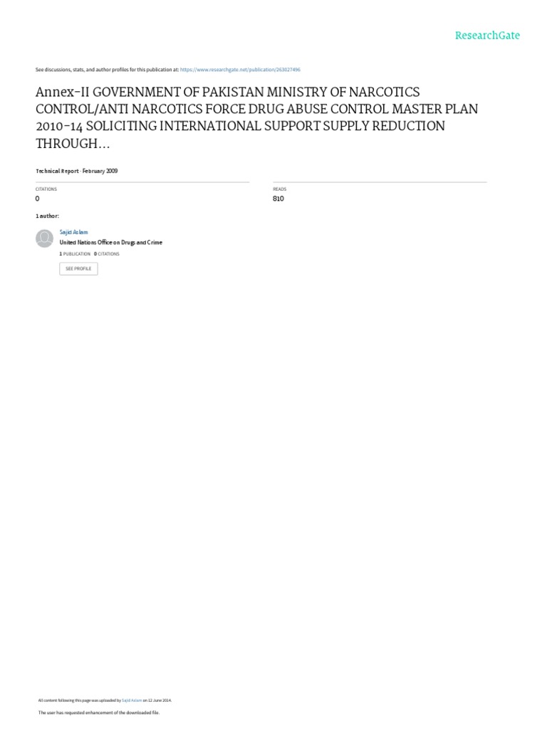 The Drug Abuse Control Master Plan 2010-14 has been prepared by the MNC / ANF.