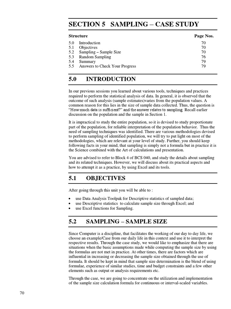 However, for other details you are advised to refer to Block 4 of BCS 040, and apply Sampling – Case Study