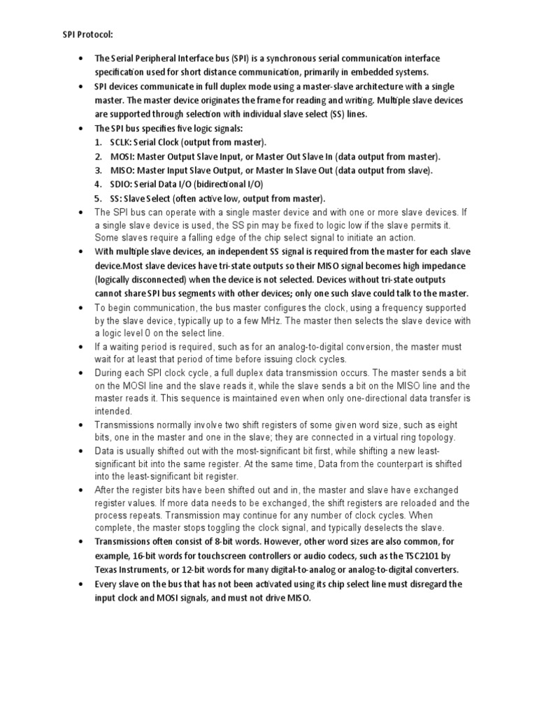 The Serial Peripheral Interface bus (SPI) is a synchronous serial communication interface
