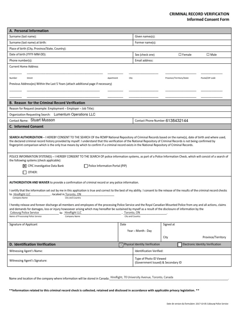 This form is required to be filled and attached to your Informed Consent Form for a Criminal Record Verification.