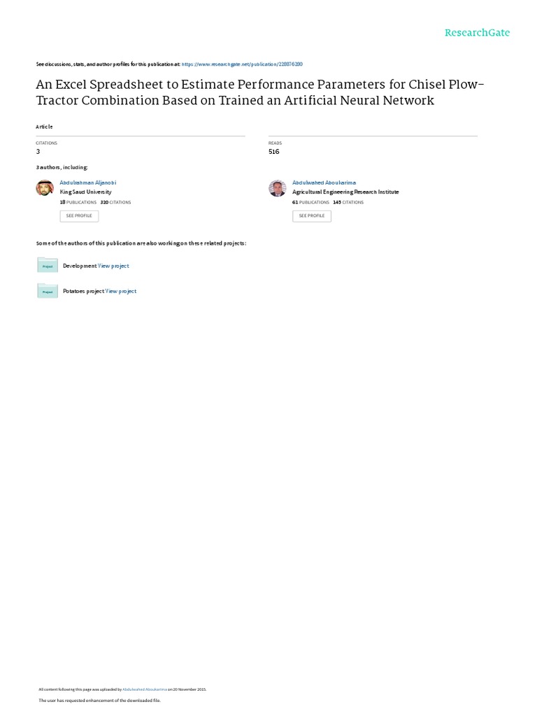 4. Al-Janobi, A. A., A. M. Aboukarima and Kh. A. Ahmed. (2001). Prediction of specific draft
