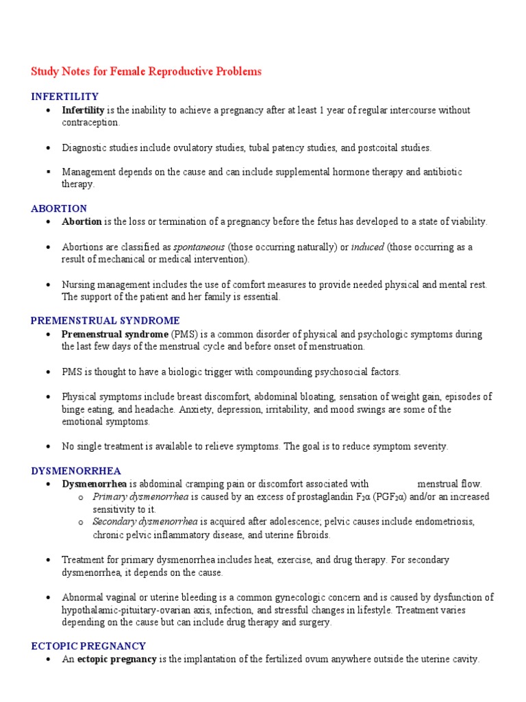 o Secondary dysmenorrhea is acquired after adolescence; pelvic causes include endometriosis,