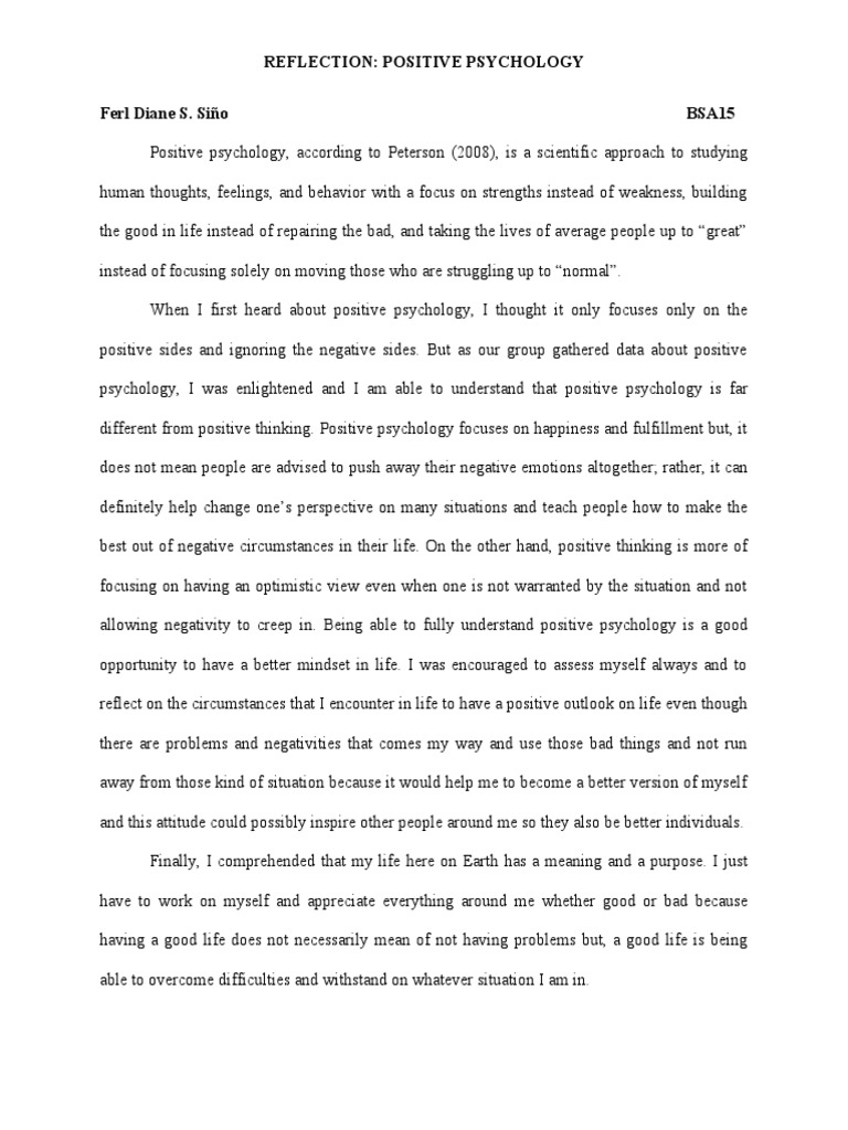 psychology, I was enlightened and I am able to understand that positive psychology is far