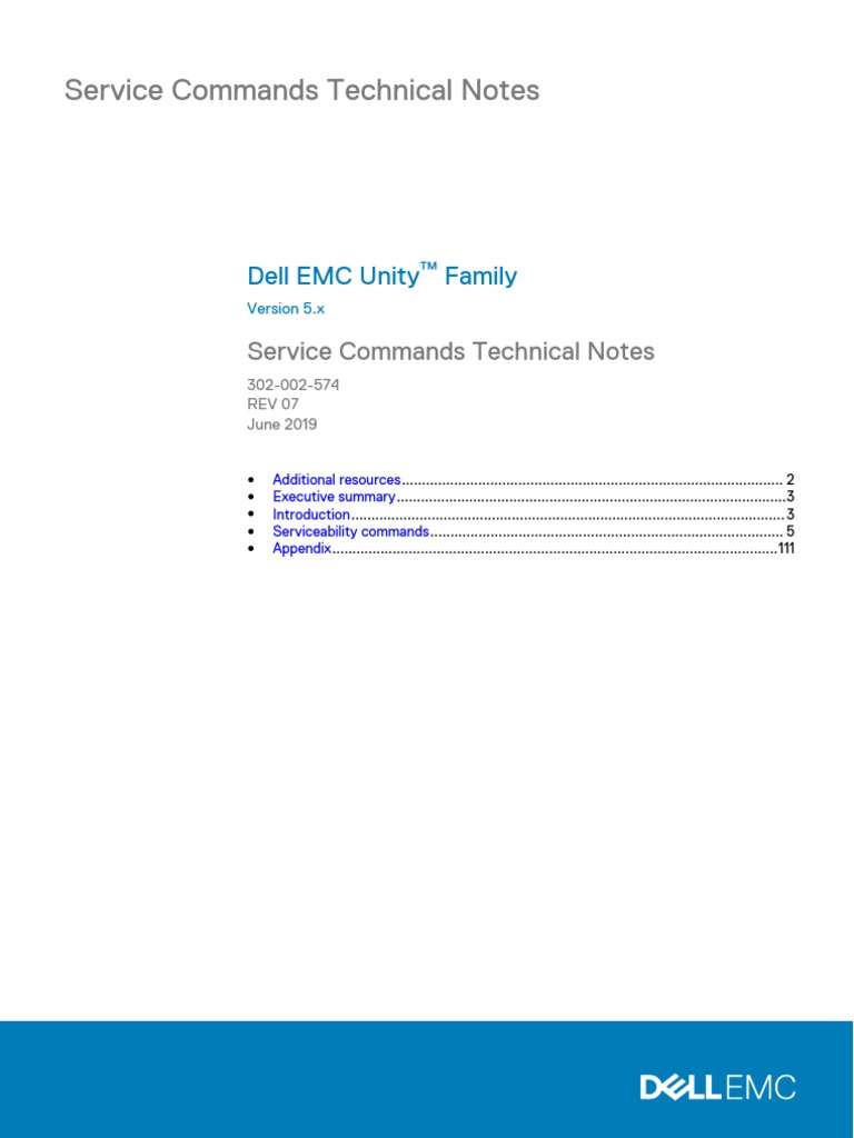 The Service Commands listed are available on Unity systems running OE version 4.2.