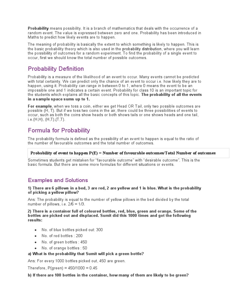 impossible one and 1 indicates a certain event. Probability for class 10 is an important topic for