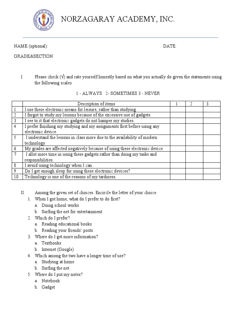 2 I forgot to study my lessons because of the excessive use of gadgets.