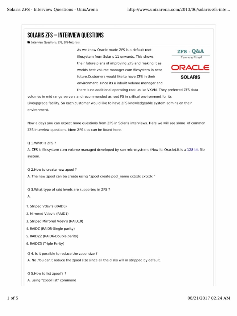 08/21/2017 02:24 AMSolaris ZFS - Interview Questions - UnixArena, http://www.unixarena.com/2013/06/solaris-2fs-inte,