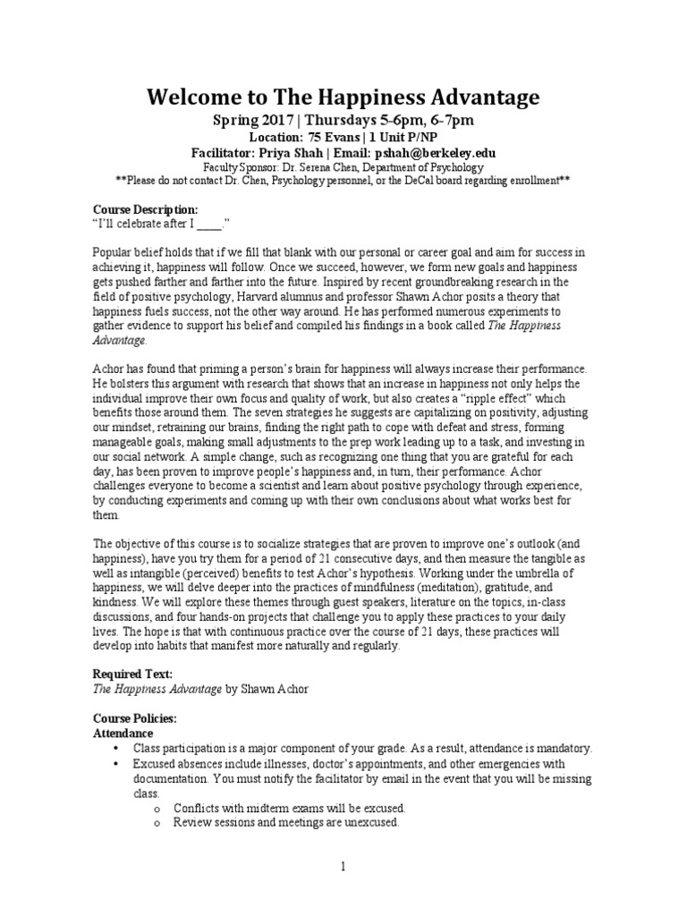 Shawn Achor and our in-class discussions as your inspiration, create your own challenge to