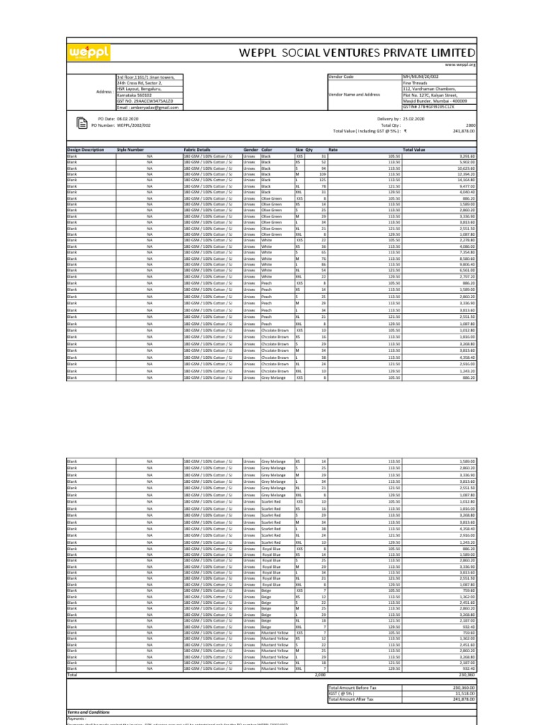 PO Number: WEPPL/2002/002 Total Qty : 2000