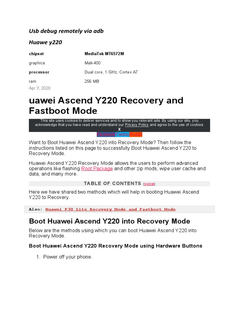 Boot Huawei Ascend Y220 into Recovery using ADB command