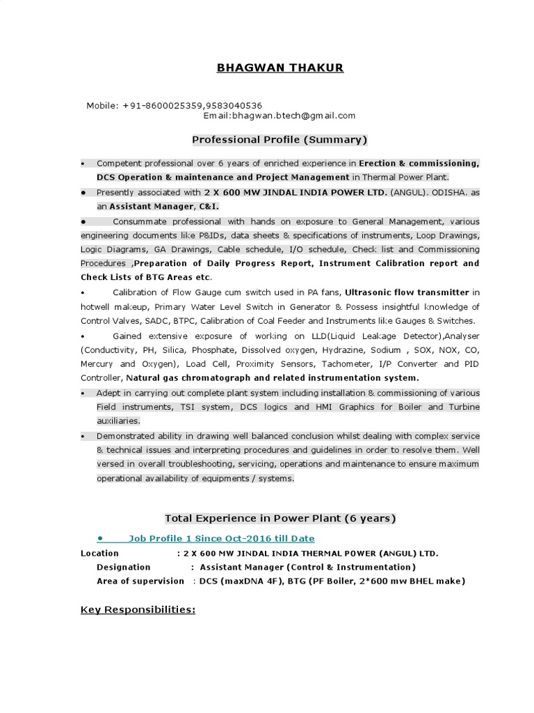Area of supervision : DCS (max DNA 4F), BTG (PF Boiler, 5*270 mw BHEL