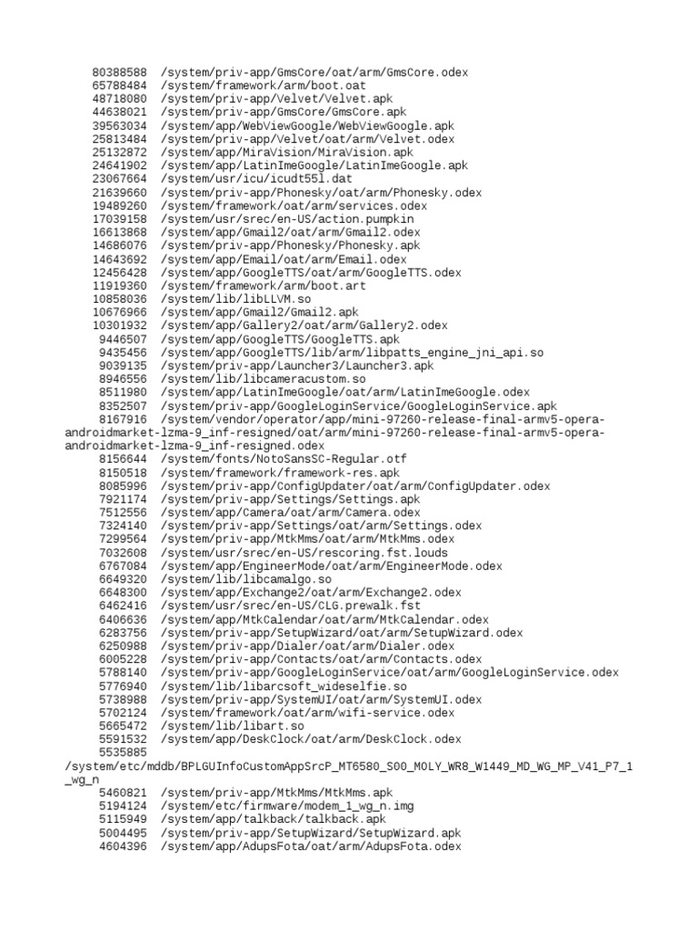 7299564 /system/priv-app/MtkMms/oat/arm/MtkMms.odex