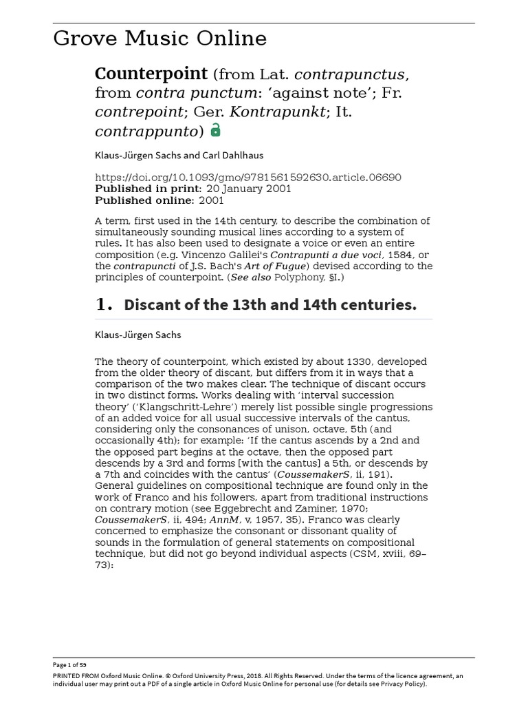 PRINTED FROM Oxford Music Online. © Oxford University Press, 2018. All Rights Reserved. Under the terms of the licence agreement, an
