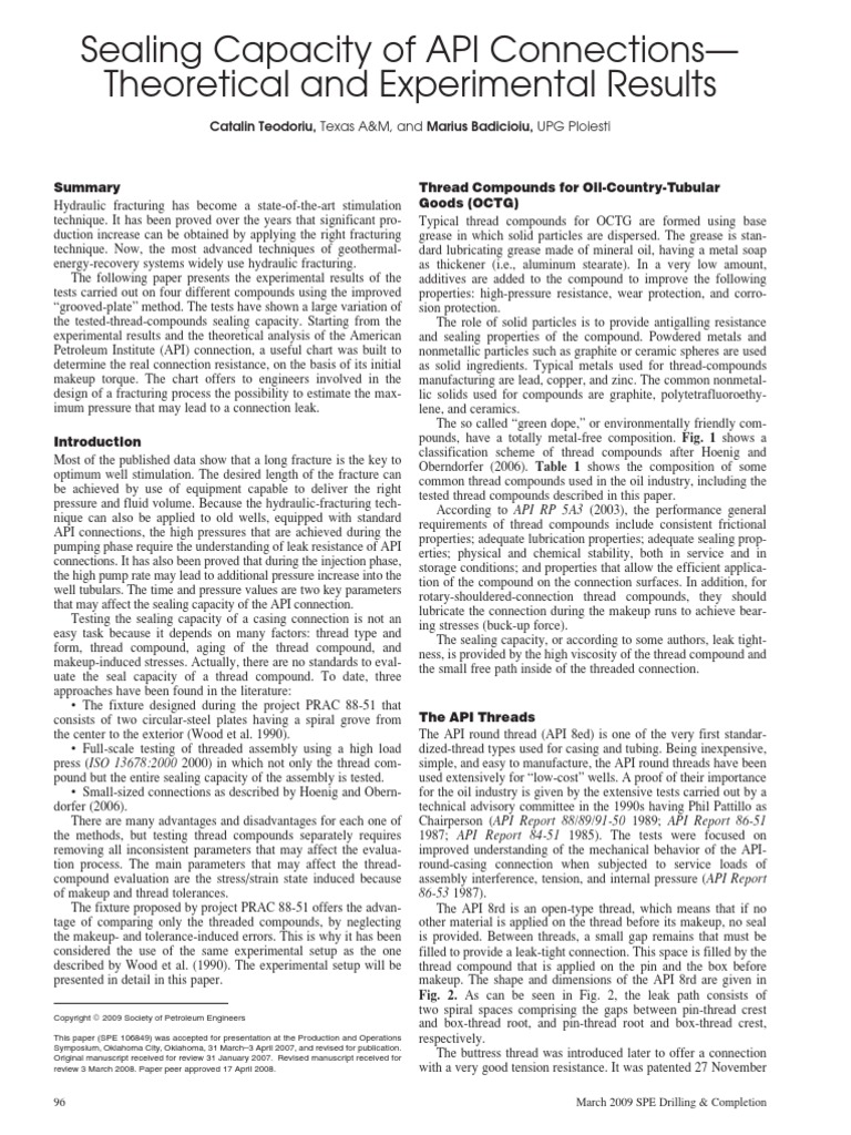 Wood, F., Dairymple, D., McKown, K., and Matthews, B. 1990. Thread- the Technical University of Clausthal and the Oil and Gas Uni-
