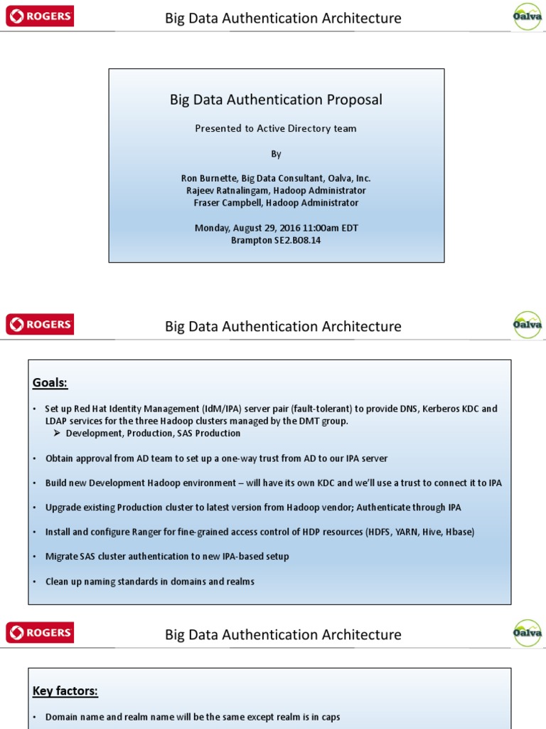 • Build new Development Hadoop environment – will have its own KDC and we’ll use a trust to connect it to IPA