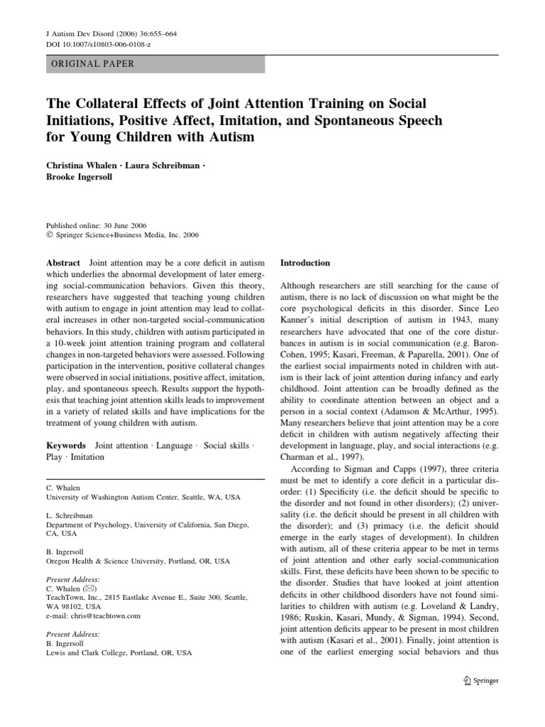 autism have been effective for language, play, imitation, Schreibman, 2003), to determine whether teaching joint