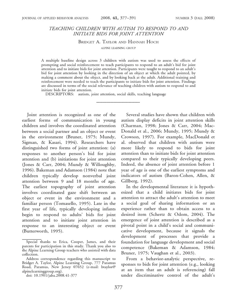 behavior-analytic procedures can be used to Jones, E. A., & Carr, E. G. (2004). Joint attention in