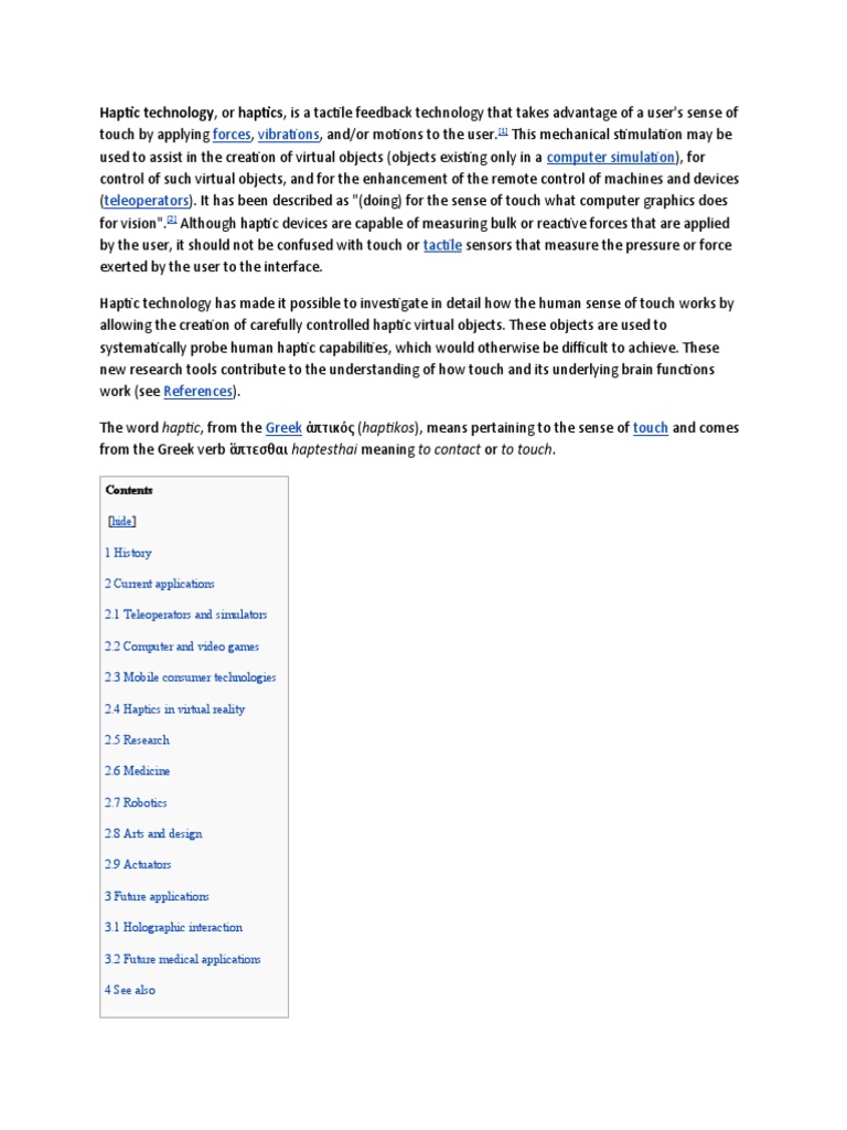 Future applications of haptic technology cover a wide spectrum of human interaction with technology.