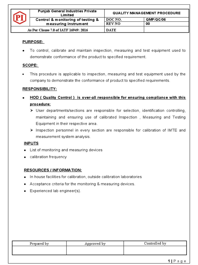 This procedure is applicable to inspection, measuring and test equipment used by the