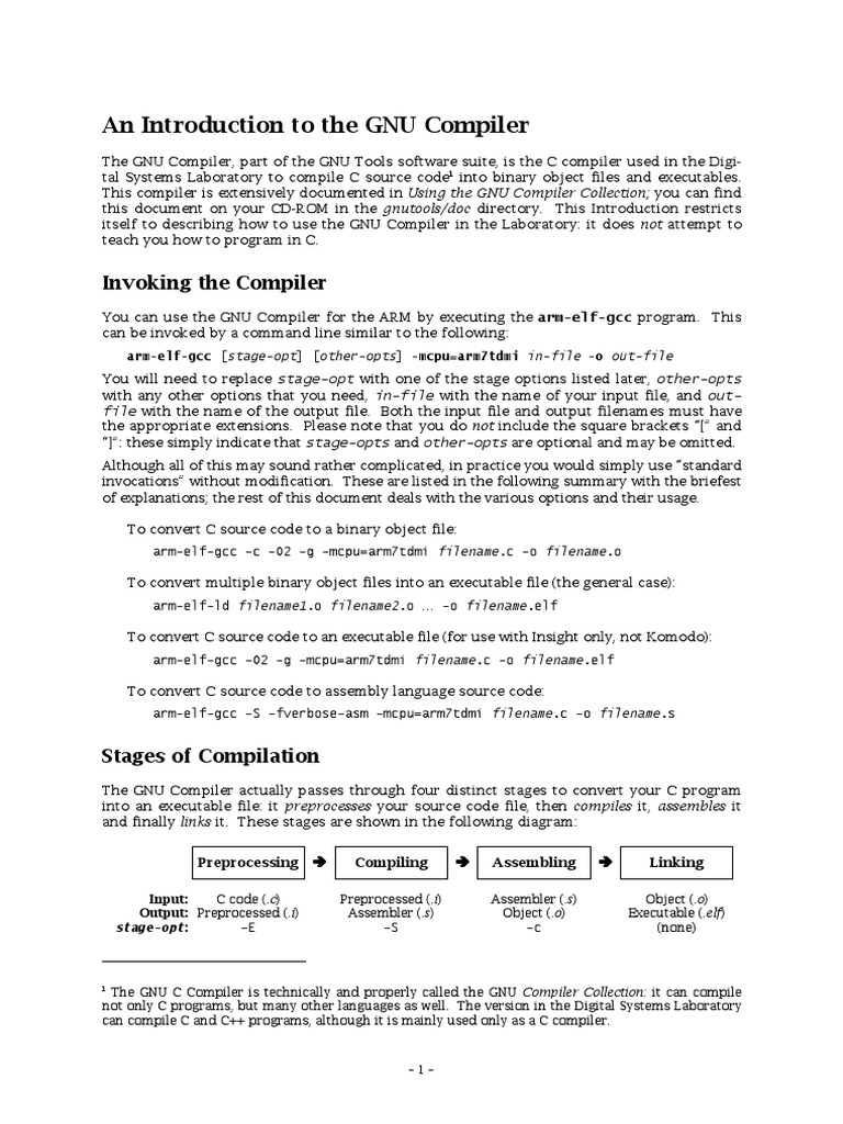 itself to describing how to use the GNU Compiler in the Laboratory: it does not attempt to