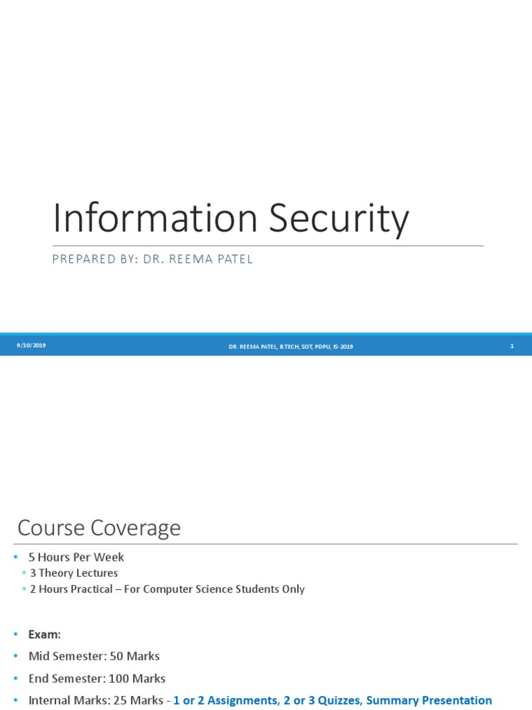9/10/2019 DR. REEMA PATEL, B.TECH, SOT, PDPU, IS-2019 2