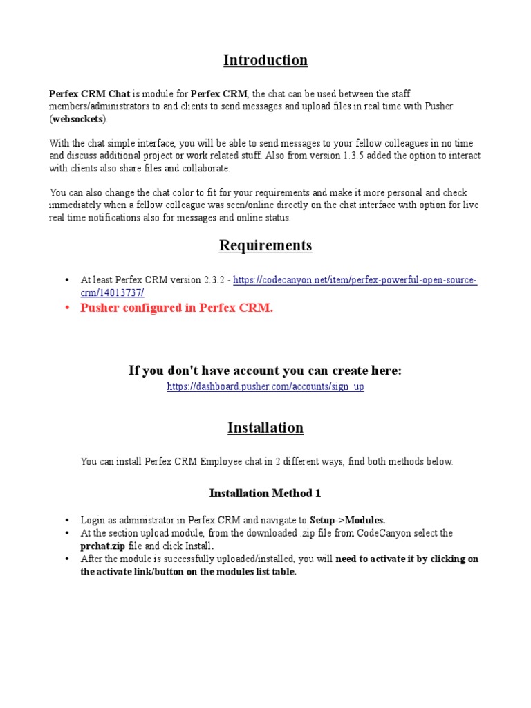• Pusher configured in Perfex CRM.