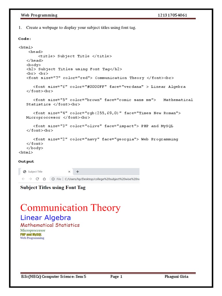 <h2> Subject Titles using Font Tag</h2>