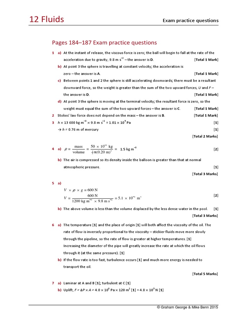 6 a) The temperature [1] and the place of origin [1] will both affect the viscosity of the oil. The