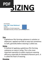 Sizing is the process of giving a protective coating on the warp yarn to minimize yarn
