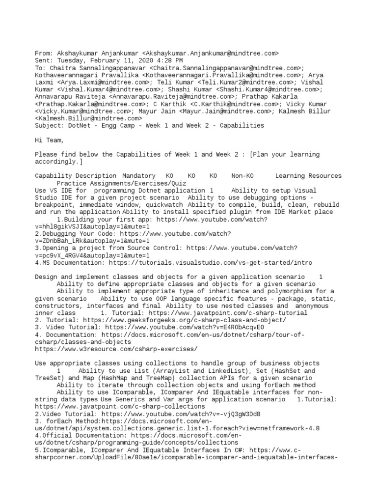 Subject: DotNet - Engg Camp - Week 1 and Week 2 - Capabilities