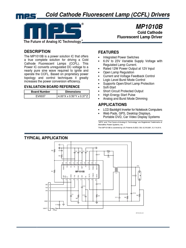 The MP1010B is a power solution IC that offers • Integrated Power Switches